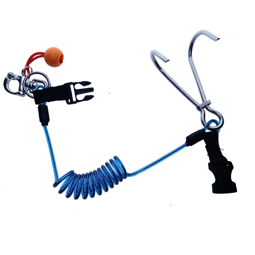 316SS Quick Releash Scuba Diving Double Drift Hook with Spiral Coil Lanyard Tech Cave Diving Current Reef Hook Diver Safety Gear
